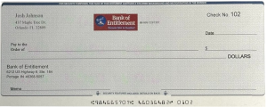 Although this is printed on authentic check paper, it is for entertainment purposes only. The routing number and account number are not valid to any bank in the world. This document cannot be deposited or cashed. Bank of Entitlement (BankOfEntitlement.com & EntitlementBank.com) is not a real bank. Attempting to deposit or cash this document could be considered a crime. Please don’t.